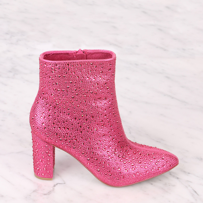 Description Women's Booties Rhinestone Embellished Pointed Toe Side Zipper Heel Height is approx. "3.5" inches